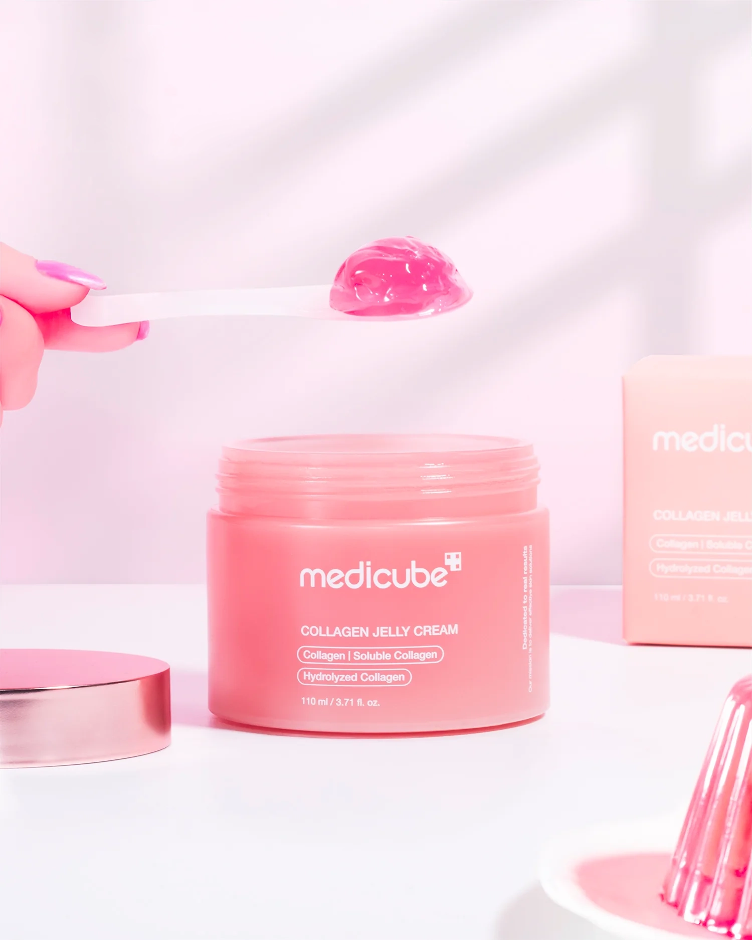 Enriquecida con tres tipos de colágeno, incluyendo colágeno hidrolizado y colágeno soluble, esta fórmula contribuye a fortalecer la estructura de la piel, mejorando su firmeza y elasticidad con el uso continuo. Además, incorpora extracto de huevo de salmón, una fuente rica en nutrientes esenciales que estimula la regeneración celular y promueve una apariencia más firme y revitalizada.